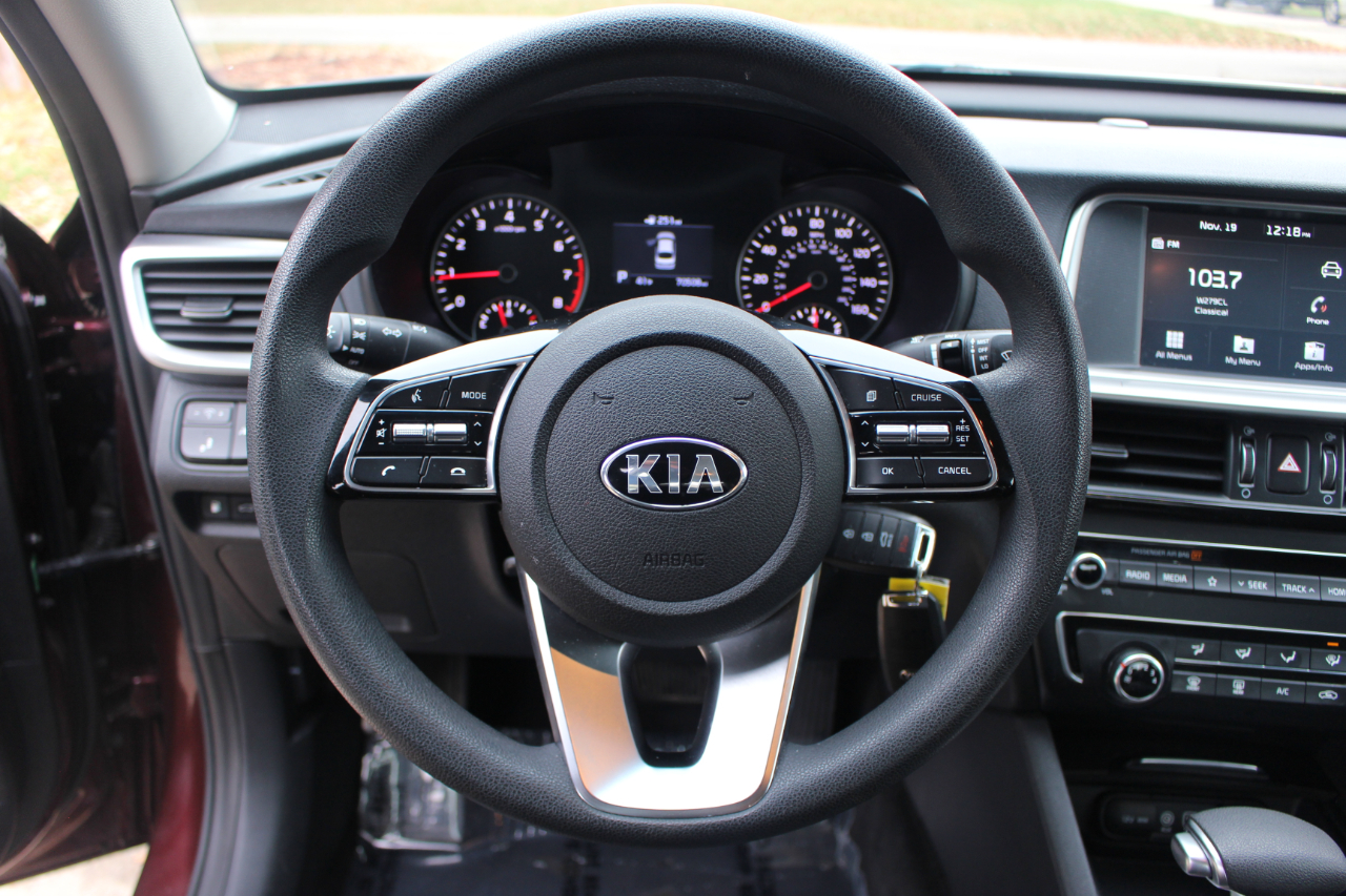 Step into luxury and style with this eye-catching MAROON 2019 Kia Optima. This pre-owned beauty is not just your average sedan; it's a statement maker, turning heads wherever it goes. The bold maroon color is a perfect match for your vibrant personality, making a lasting impression on everyone you pass by.